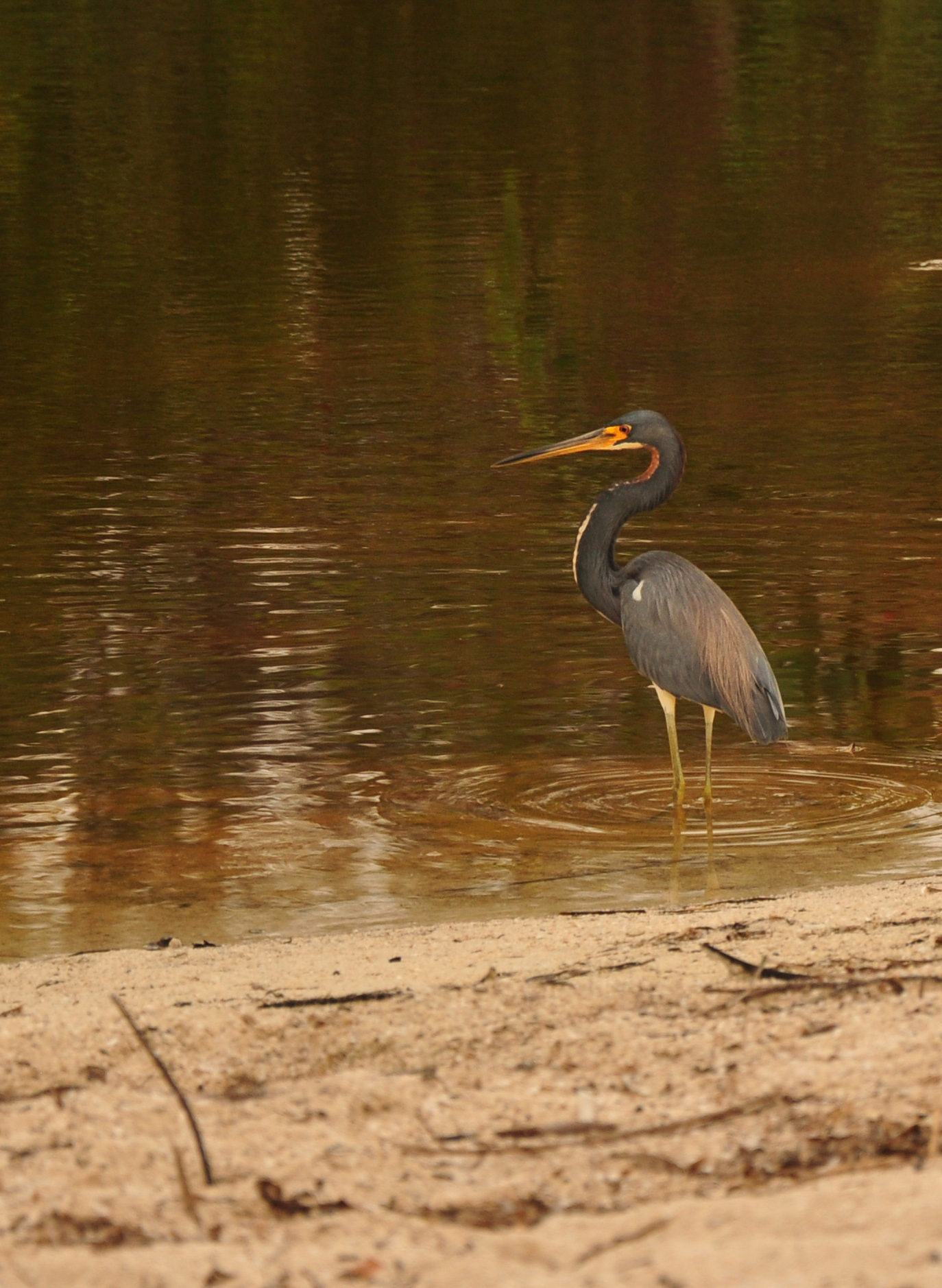 Here are the two best photos of our sighting (yes, I took more) of an Egretta tricolor, in all it’s tri-colours.
